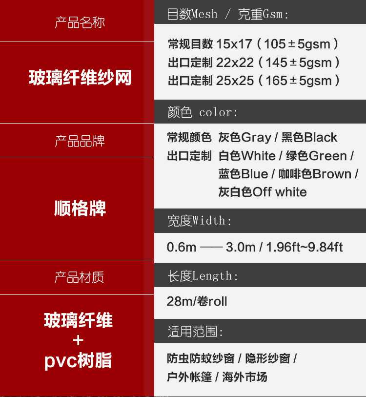 15x17玻璃纤维纱网 Fiberglass Screen Mesh